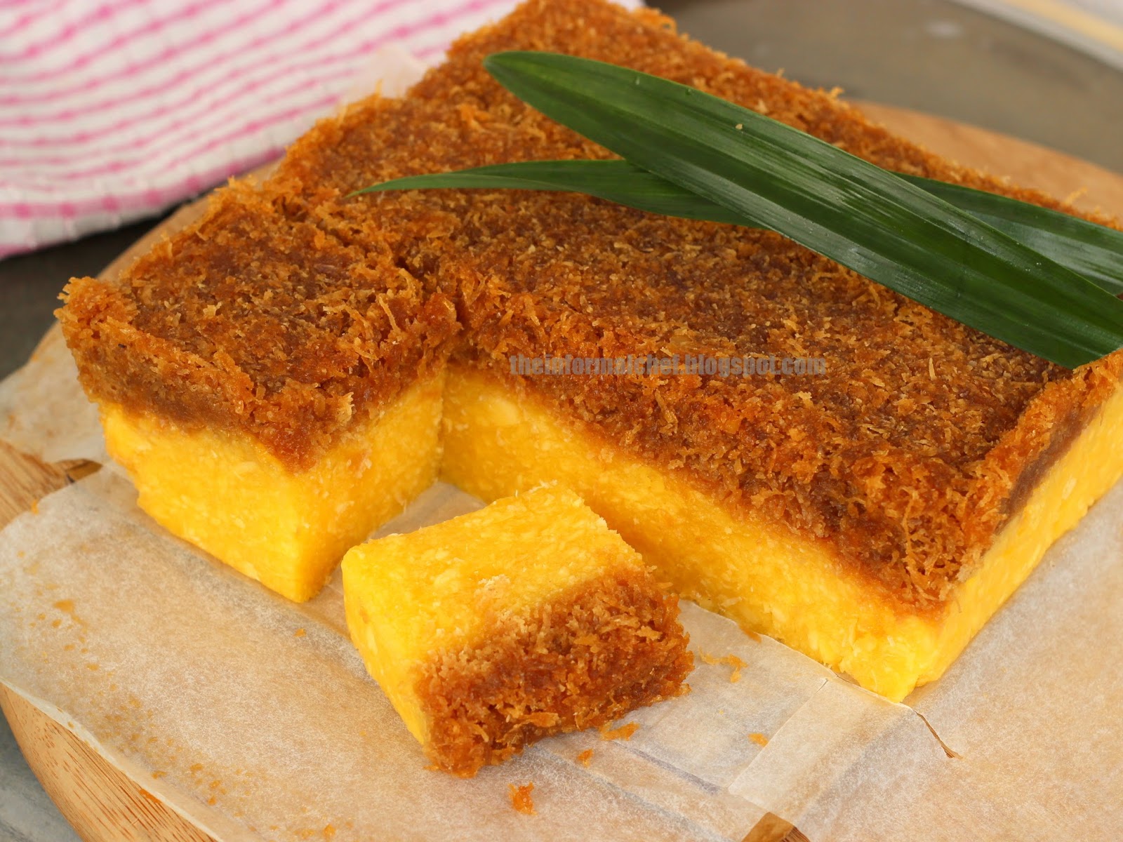 Made this Getuk Ubi (some call it getuk-getuk) again because I just harvested a lot of cassava from my garden. This time, I made a whole tray of it. Recipe has been updated as I find the previous recipe a bit soft. This recipe turned out to be of my liking. If you notice, the cassava used here is of another species and is yellow in colour making the cake looked all the more beautiful. Loving the darker hues of both top and bottom.